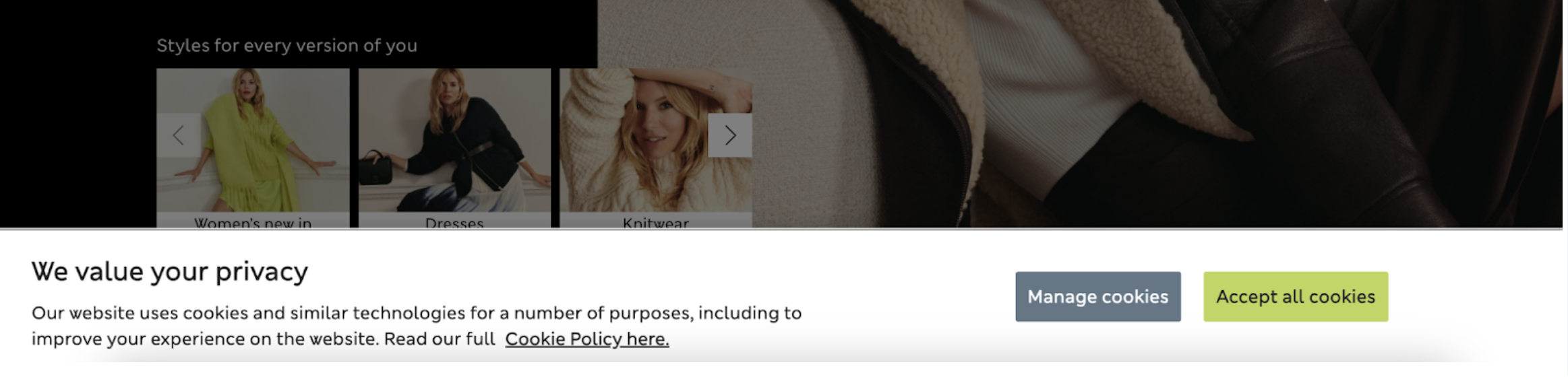This has given advertisers' legal teams a much stronger voice at board level to urge for stronger website compliance. This led to extremely compliant banners being introduced particularly by larger retailers, often resulting in websites being almost unusable if all cookies are rejected. Many as we see in the examples above, have rolled back the compliance to make them much more user friendly for consumers.