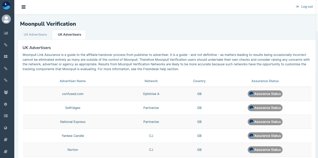 Affiliate and Partner Networks that are Moonpull Verification Networks have the benefit of being able to add comments to the Assurances on the advertisers utilising their technologies, being alerted when new entries are added to the Verification database. Additionally, they are able to add customisations to the Assurance process to make results more accurate where advertisers have their own format of first party affiliate integration.